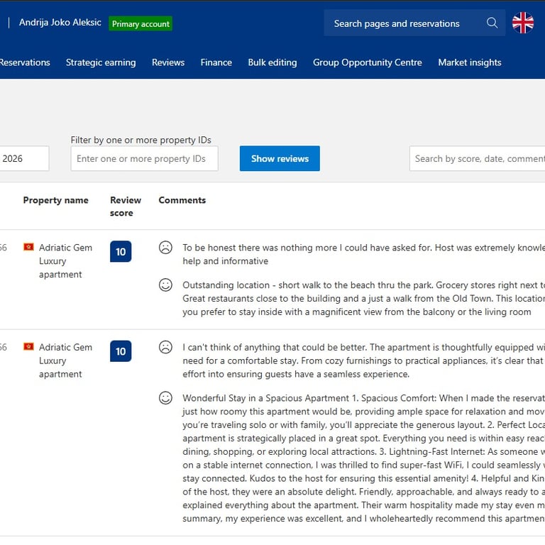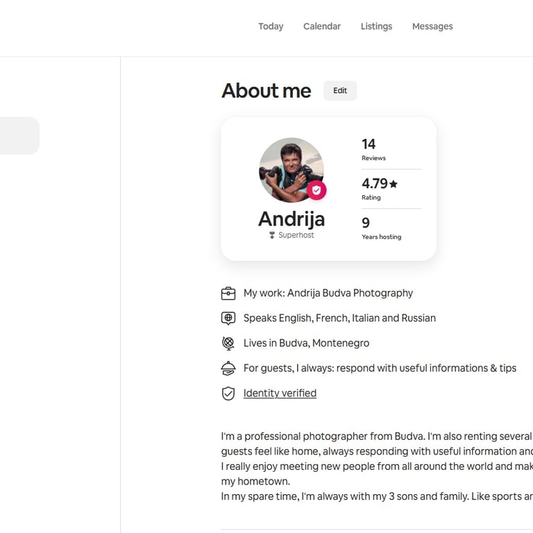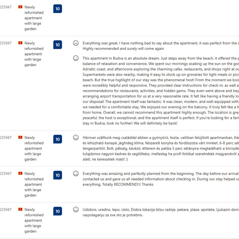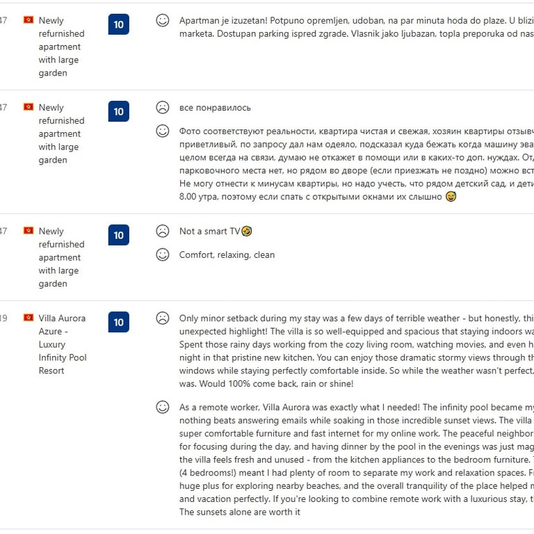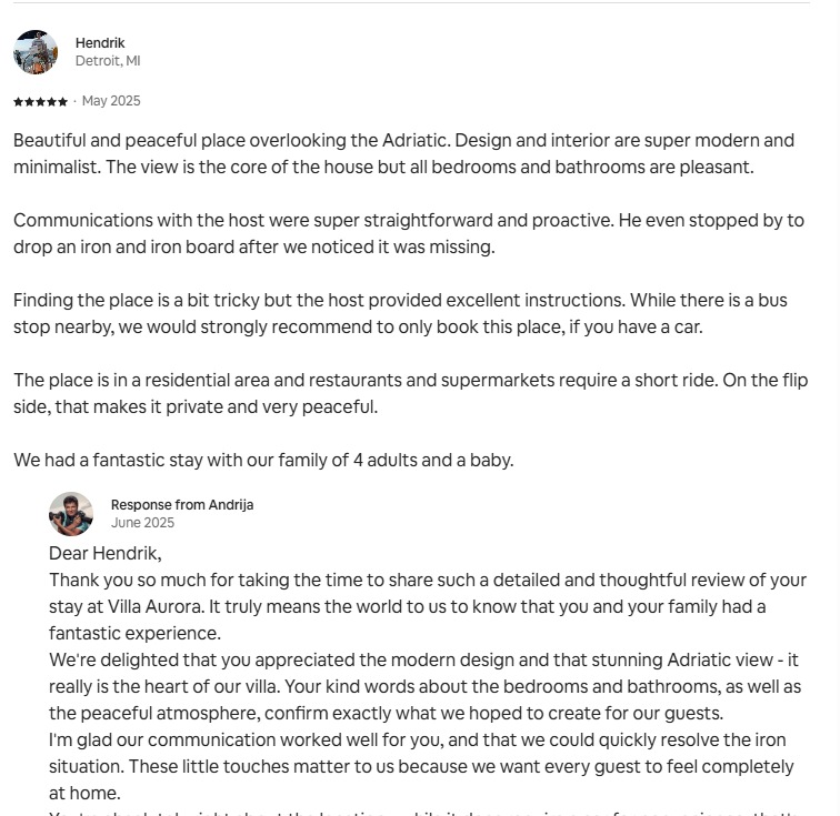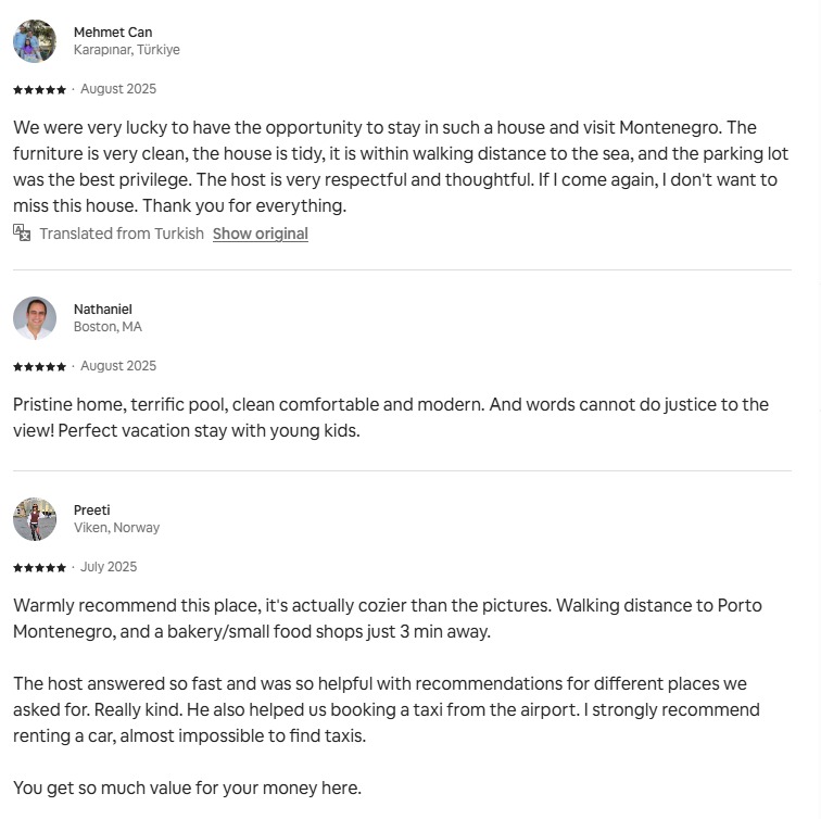 Andrija i Valentina su nam od prvog dana ulili povjerenje. Sve je potpuno transparentno, tačno znamo koliko je bilo rezervacija, po kojoj cijeni i koji su troškovi, bez ikakvih “sitnih slova”. Najviše cijenim povjerljivost i način na koji komuniciraju: profesionalno, diskretno i uvijek u interesu vlasnika. Mi smo se bukvalno rasteretili, a prihod je postao stabilniji.